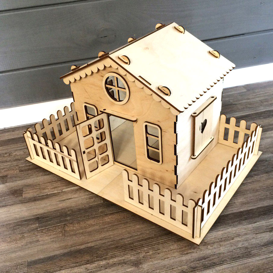 Эко дом для кукол состоит из одного этажа. Резные окна, заборчик - разве не чудо!