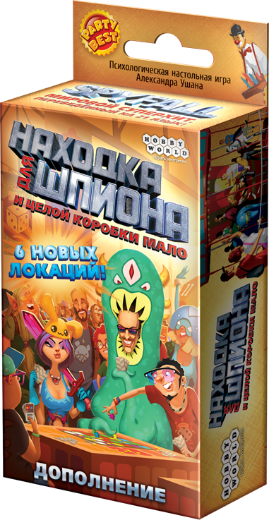 На самом деле у шпиона отличная жизнь, а его навыки поражают: он знает различия между овощной базой и подводной лодкой, отвечая без запинки на любые вопросы резидентов. Предложенные в центре очередные задания смогли прийтись к месту: пришло время, чтобы наш спецагент вновь ощутил острые ощущения. «И полной коробки окажется мало» - приложение к знаменитой всем игре «Шпионская находка». Теперь у вас появилась возможность замешать в базовую коробку шесть новых локаций и поймать шпиона, прячущегося на хоккее и в ночных дискотеках, в зоопарке и на мероприятиях по настольным играм. Главные отличия игры: