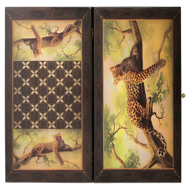 Нарды + шашки Смоленские "Леопард на ветке" средние