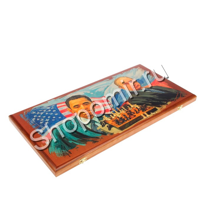 Нарды деревянные Путин и Обама малые 40 см