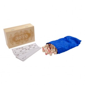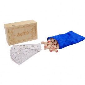 Ведущий вытаскивает из мешочка бочонок с цифрой и объявляет ее. Другие игроки должны быстро найти данную цифру в разложенных перед ними карточках. Первый, кто нашел, получает бочонок и накрывает цифру, а после накрывания целой линии объявляет, что первый этап закончен. Игра продолжается до тех пор, пока один из игроков не закроет полностью всю карточку. Комплект бочонков складывается в красивую шкатулку из дерева, на которой нанесена изящная гравировка.