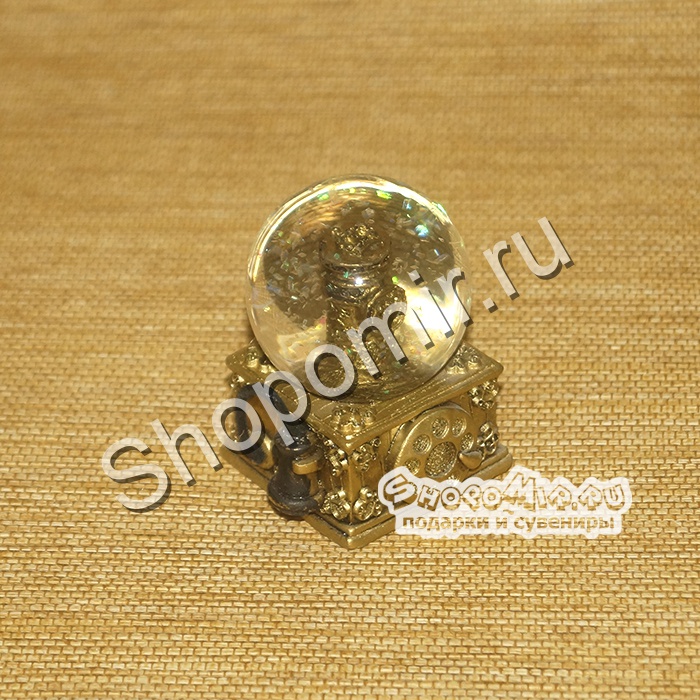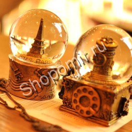 Подставка и оригинальная фигурка внутри сделана из полистоуна, сверху укреплен шар из стекла. Стоит взять безделицу в руки и легонько тряхнуть, и под прозрачным куполом тут же начнется снегопад из сверкающих блесток.