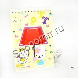 Светит светодиодными лампочками. Подключается к питанию, компьютеру или ноутбуку. Чтобы изменить фон, просто переверните страницу или нарисуйте самостоятельно свой рисунок, или напишите пожелание.